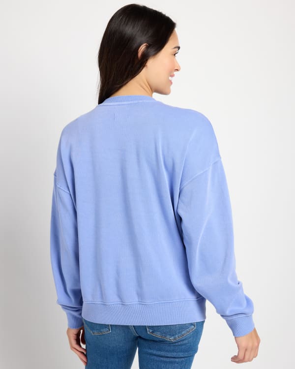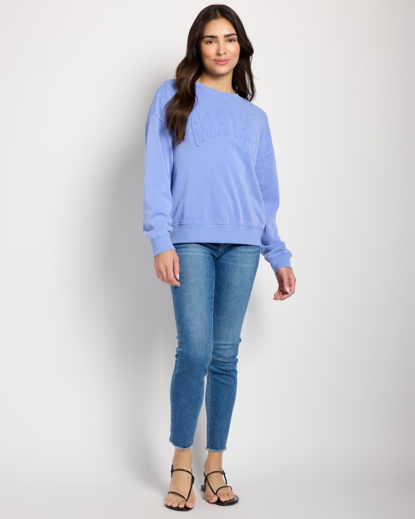 Live your best lake life in this cozy graphic sweatshirt! Regular, slightly cropped fit with dropped shoulders and cute ribbed details. The mid-weight cotton blend keeps you warm while the "GREAT LAKES" decal keeps you serene.