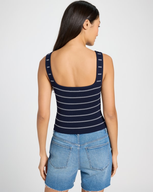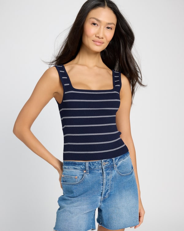 You can never go wrong with a striped top! Slim fit in a ribbed, stretchy knit. Layer your favorite necklaces to round out the square neckline.