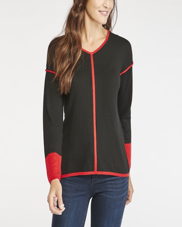 V-Neck Sweater with Contrast Piping