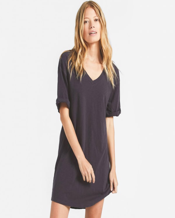 Let 100% breathable cotton breeze you through the day. This roomy t-shirt dress has a shift silhouette that will provide you with the all-day comfort you deserve. Elevate this basic with a dainty necklace and a pair of white sneakers.